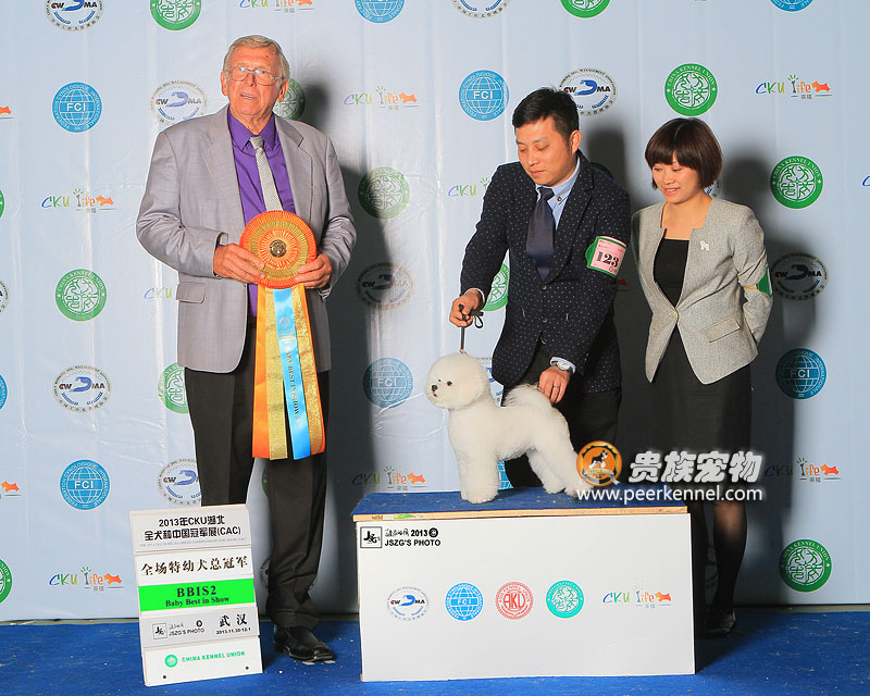 Discovery不愧為我們貴族寵物新一代的小戰神.繼廊坊AKU亞洲全犬種國際冠軍展獲得全場后備總冠軍之后,給我們上演了一場犬展界的“帽子戲法”,在此次CKU舉辦的中國全犬種冠軍展上,連續三次獲得全場總冠軍BIS1x3的驕人成績,獲得了諸位裁判的青睞。真是激動人心的時刻!這證明范老師這段時間的辛苦付出是值得的,更加另人欣慰的是,初上賽場的Nat也榮獲Baby全場后備總冠軍的好成績,同時也恭喜我們可愛的Rainblow為它的新主人高小姐贏得了一份榮譽,真是一群讓人贊嘆的孩子們~~