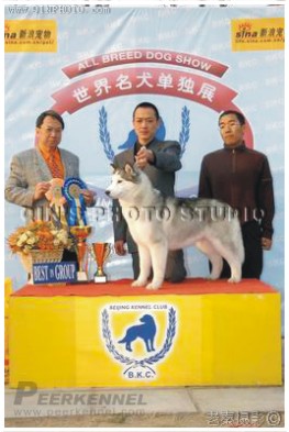 2007年10月 牽引哈士奇犬DEMON于北京犬展取得BISS獎勵。