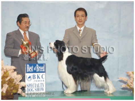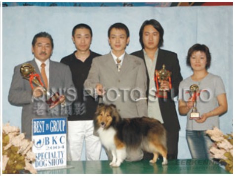 2004年09月 牽引喜樂蒂牧羊犬菲冰于北京犬展取得BIS獎勵。