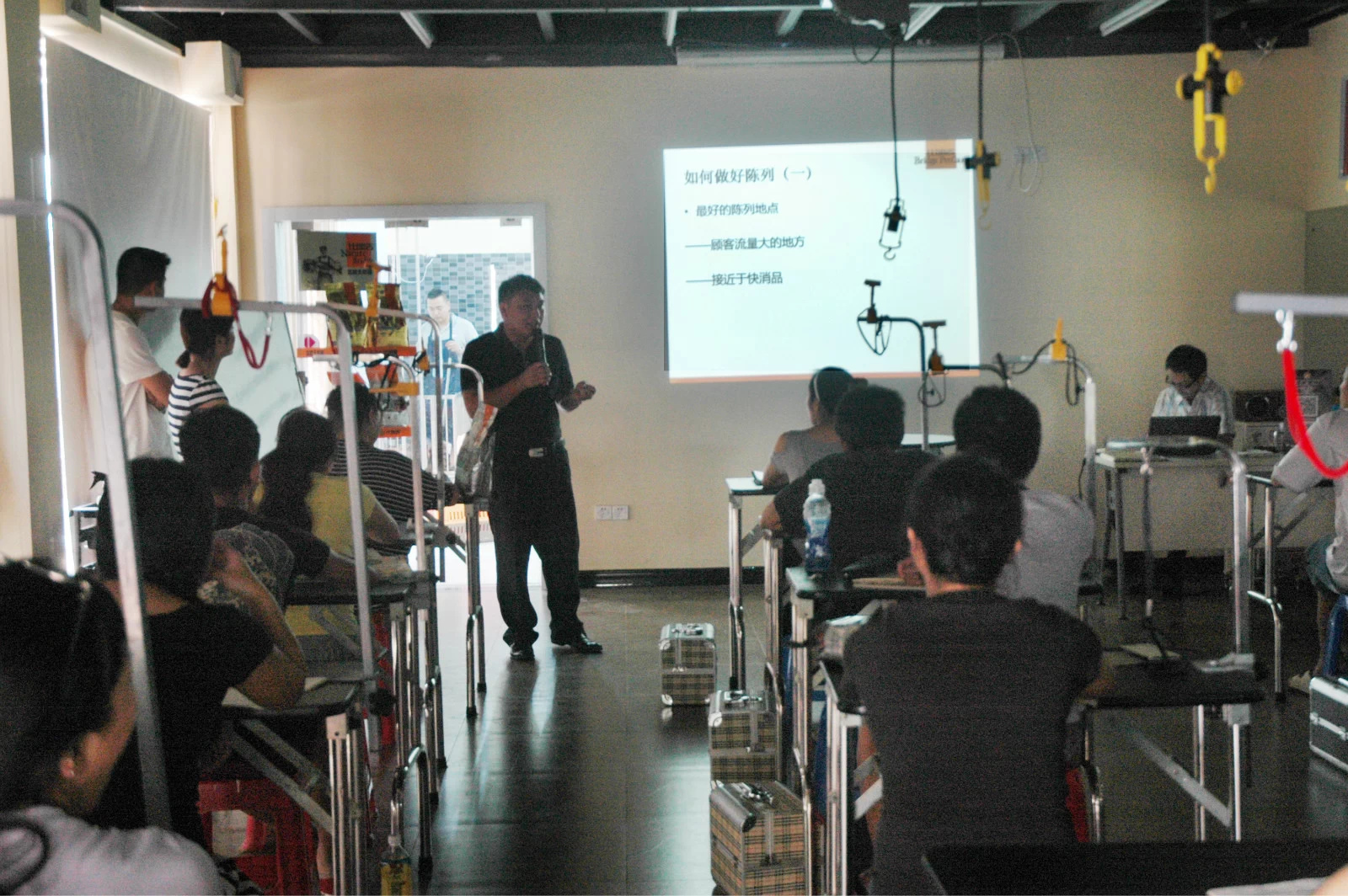 課堂上,徐老師以幽默且簡單易懂的圖文方式,讓同學們更深入的了解到有效的產(chǎn)品陳列對店面經(jīng)營的重要性,同學們在課堂上與老師積極互動,整個氣氛相當活躍哦~