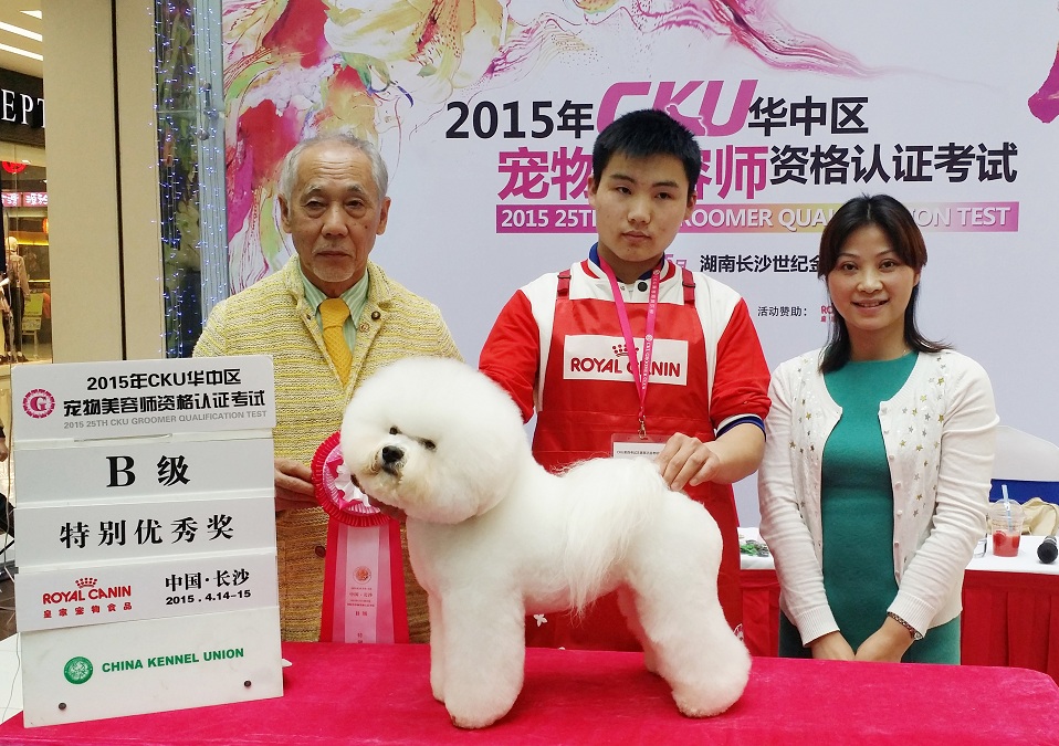 武漢貴族寵物美容培訓學校優秀學員任明慧同學榮獲2015年CKU美容認證考試B級特別優秀獎