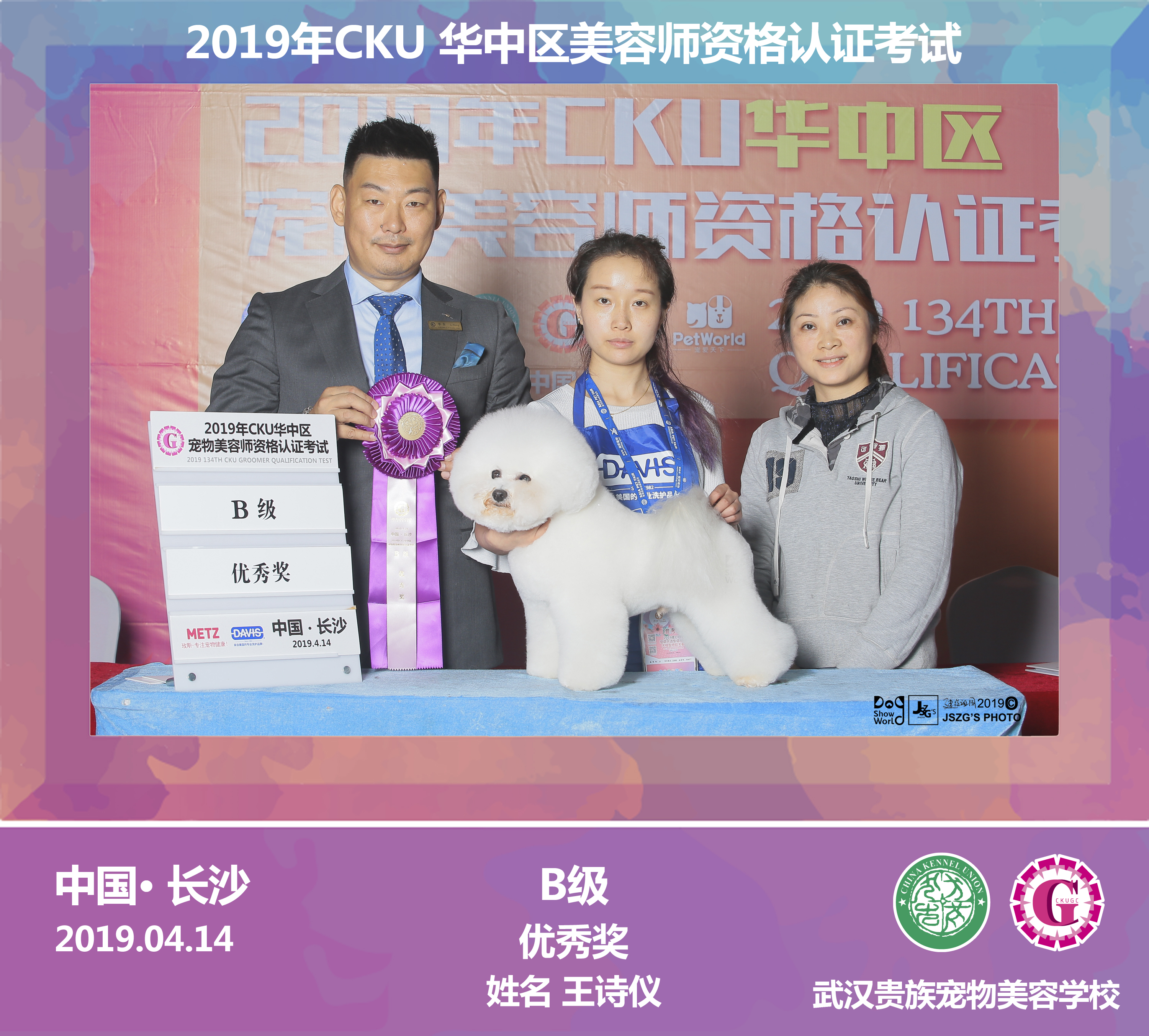 武漢貴族寵物美容培訓(xùn)學(xué)校優(yōu)秀學(xué)員王詩(shī)儀同學(xué)榮獲2019年CKU美容認(rèn)證考試B級(jí)優(yōu)秀獎(jiǎng)